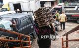 Pedagang mengangkat telur untuk diantar ke pembeli di pasar Rawamangun, Jakarta, Selasa (17/12/2024). Pedagang mengakui harga telur ayam negeri mengalami kenaikan sejak sepekan terakhir. Saat ini  harga telur ditempat tersebut mencapai Rp 31.000 per kilogram. Padahal sepekan sebelumnya masih diharga Rp. 26.000 per kilogram. Menurut pedagang kemungkinan harga telur akan kembali normal setelah tahun baru. Banyak konsumen yang mengeluh akan kenaikan harga telur tersebut terutama dari kalangan ibu rumah tangga. (FOTO : Republika/Prayogi)