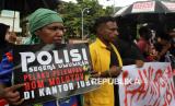 REPUBLIKA.CO.ID, PAPUA -- Pengunjuk rasa dari Asosiasi Wartawan Papua (AWP), mahasiswa, dan aktivis HAM membawa poster saat berunjuk rasa di Mapolda Papua, Selasa (17/12/2024).