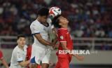 Pemain Timnas Indonesia Achmad Maulana Syarif melakukan duel udara dengan pemain Filipina pada pertandingan Grup B Piala AFF di Stadion Manahan, Solo, Sabtu (21/12/2024). Indonesia kalah dengan skor 0-1 dari Filipina. Dengan kekalahan ini, Timnas Indonesia tersingkir dari kejuaraan Piala AFF 2024. (FOTO : Republika/Edwin Dwi Putranto)