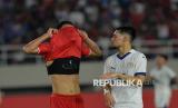 Ekspresi pemain Timnas Indonesia Pratama Arhan saat melawan Filipina pada pertandingan Grup B Piala AFF di Stadion Manahan, Solo, Sabtu (21/12/2024). Indonesia kalah dengan skor 0-1 dari Filipina. Dengan kekalahan ini, Timnas Indonesia tersingkir dari kejuaraan Piala AFF 2024. (FOTO : Republika/Edwin Dwi Putranto)
