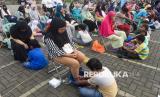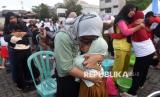 Anak-anak menangis saat mengikuti aksi cuci kaki ibu secara massal di kawasan Gambir, Jakarta Pusat, Ahad (22/12/2024). Kegiatan yang diikuti 100 ibu dan 100 anak tersebut dilakukan dalam rangka menyambut Hari Ibu yang jatuh pada tanggal 22 Desember. (FOTO : ANTARA FOTO/Indrianto Eko Suwarso)
