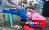 REPUBLIKA.CO.ID, JAKARTA Anak-anak mencuci kaki ibunya saat mengikuti aksi cuci kaki ibu secara massal di kawasan Gambir, Jakarta Pusat, Ahad (22/12/2024).