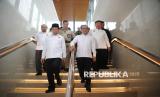 Menko Bidang Pembangunan Manusia dan Kebudayaan Pratikno, Menko Polkam Budi Gunawan dan Menteri Agama Nasaruddin Umar serta pejabat lainnya berbincang saat melintasi Terowongan Silaturahim Masjid Istiqlal - Gereja Katedral usai meninjau Gereja Katedral, Jakarta, Selasa (24/12/2024). Terowongan Silaturahim yang menghubungkan antara Masjid Istiqlal dan Gereja Katedral dapat digunakan para jemaat yang ingin melaksanakan misa di Gereja Katedral pada Natal tahun ini. Hal ini dilakukan untuk memudahkan mobilisasi umat yang akan beribadah. Jemaat yang hendak beribadah di Gereja Katedral bisa memarkirkan kendaraan di kantong parkir Masjid Istiqlal. (FOTO : Republika/Prayogi)