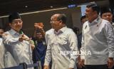 Menteri Koordinator Bidang Pembangunan Manusia dan Kebudayaan Pratikno (tengah) bersama Menteri Koordinator Bidang Politik dan Keamanan Budi Gunawan (kanan) dan Menteri Agama Nasaruddin Umar (kiri) mengunjungi Terowongan Silaturahim usai meninjau pengamanan di Gereja Katedral, Jakarta, Selasa (24/12/2024). Peninjauan langsung tersebut guna memastikan rangkaian perayaan Natal berjalan lancar, aman, dan damai. (FOTO : ANTARA FOTO/Muhammad Ramdan)
