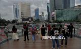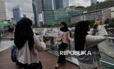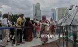 REPUBLIKA.CO.ID, JAKARTA -- Pengunjung berwisata di anjungan Halte Bundaran Hotel Indonesia, Jakarta, Rabu (25/12/2024).