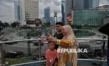 Pengunjung berwisata di anjungan Halte Bundaran Hotel Indonesia, Jakarta, Rabu (25/12/2024). Pada masa libur Natal dan Tahun Baru 2024-2025, sejumlah warga memanfaatkan waktunya untuk berlibur menikmati lanskap perkotaan dan berswafoto di anjungan Halte Bundaran HI. Keberadaan anjungan Halte Bundaran HI tersebut menjadi destinasi wisata alternatif di Jakarta yang memiliki daya tarik tersendiri dengan menyajikan spot foto dengan latar belakang patung Selamat Datang dan lanskap Perkotaan. Selain itu, di halte tersebut juga menyediakan beragam kuliner dan fasilitas lainnya seperti musala dan toilet untuk memberikan kenyamanan bagi para pengunjung. Bagi warga yang hendak berwisata di halte tersebut, cukup menempelkan Kartu Uang Elektronik (KUE) di mesin pintu masuk seperti penumpang bus transjakarta lainnya. (FOTO : Republika/Thoudy Badai)