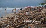 Sepanjang pantai tersebut dipenuhi sampah kiriman berupa kayu, bambu, dan plastik akibat gelombang tinggi disertai angin kencang yang terjadi di kawasan itu sejak awal bulan Desember 2024.
