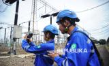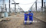 Petugas PLN melakukan inspeksi peralatan di Gardu Induk Tegangan Ekstra Tinggi (GITET) 500 kV Gandul, Cinere, Depok, Jawa Barat, Jumat (27/12/2024). PLN memastikan bahwa ketersediaan pasokan listrik PLN pada momen Natal dan Tahun Baru (Nataru) tercukupi dengan baik dan tidak bakal kekurangan pasokan listrik. Dalam kesempatan tersebut Wakil Menteri BUMN Kartika Wirjoatmodjo juga melakukan peninjauan. Adapun tinjauan tersebut dilakukan untuk memastikan pasokan listrik selama natal dan tahun baru 2024/2025 dalam kondisi aman. (FOTO : Republika/Prayogi)