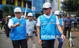 Wakil Menteri BUMN Kartika Wirjoatmodjo berbincang bersama Direktur Transmisi dan Perencanaan Sistem PLN Evy Haryadi saat meninjau Gardu Induk Tegangan Ekstra Tinggi (GITET) 500 kV Gandul, Cinere, Depok, Jawa Barat, Jumat (27/12/2024). Wakil Menteri BUMN Kartika Wirjoatmodjo melakukan peninjauan tersebut dilakukan untuk memastikan pasokan listrik selama natal dan tahun baru 2024/2025 dalam kondisi aman. PLN memastikan bahwa ketersediaan pasokan listrik PLN pada momen Natal dan Tahun Baru (Nataru) tercukupi dengan baik dan tidak bakal kekurangan pasokan listrik. (FOTO : Republika/Prayogi)