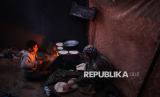Seorang anak Gaza membantu ibunya menyiapkan roti untuk makan mereka di kamp pengungsi Deir al-Balah, Jalur Gaza tengah, Jumat (27/12/2024). Anak-anak Gaza yang tinggal di dalam tenda pengungsian hidup dengan penuh keterbatasan. Mereka harus menghadapi ancaman hawa dingin dan keterbatasan pasokan makanan. Tenda-tenda yang dibangun seadanya tidak melindungi mereka sepenuhnya dari hawa dingin. Agresi Israel ke Palestina telah membuat 90 persen warga Gaza mengungsi dan tinggal di kamp pengungsian. (FOTO : Majdi Fathi/NurPhoto)