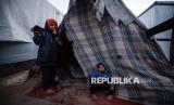 Anak Gaza berada di tenda pengungsian yang terbuat dari potongan kain dan nilon, di sebuah kamp pengungsi Palestina di tepi pantai di Deir al-Balah, Jalur Gaza tengah, Jumat (27/12/2024). Anak-anak Gaza yang tinggal di dalam tenda pengungsian hidup dengan penuh keterbatasan. Mereka harus menghadapi ancaman hawa dingin dan keterbatasan pasokan makanan. Tenda-tenda yang dibangun seadanya tidak melindungi mereka sepenuhnya dari hawa dingin. Agresi Israel ke Palestina telah membuat 90 persen warga Gaza mengungsi dan tinggal di kamp pengungsian. (FOTO : Majdi Fathi/NurPhoto)