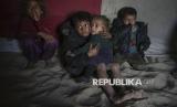 Anak-anak Gaza duduk di dalam tenda di kamp pengungsi Deir al-Balah, Jalur Gaza tengah, Jumat (27/12/2024). Anak-anak Gaza yang tinggal di dalam tenda pengungsian menghadapi ancaman hawa dingin. Tenda-tenda yang dibangun seadanya tidak melindungi mereka sepenuhnya dari hawa dingin. Agresi Israel ke Palestina telah membuat 90 persen warga Gaza mengungsi dan tinggal di kamp pengungsian. (FOTO : AP Photo/Abdel Kareem Hana)