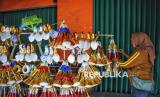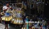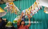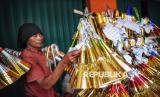 Pedagang terompet Rojali (50) menyelesaikan pembuatan terompet yang akan di jual di kawasan di Jalan Pintu Besar Selatan, Glodok, Jakarta, Sabtu (28/12/2024). Rojali sudah berjualan terompet musiman di tempat itu sejak 20 tahun lalu. Keterampilan membuat terompet tersebut Rojali peroleh dari orang tuanya yang juga pedagang terompet musiman. Dia berharap tahun 2024 ini penjualan terompet kembali bergeliat dan kembali laris seperti sebelum pandemi. (FOTO : Republika/Prayogi)
