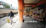 Pedagang terompet Rojali (50) berfoto di depan terompet dagangannya di kawasan di Jalan Pintu Besar Selatan, Glodok, Jakarta, Sabtu (28/12/2024). Rojali sudah berjualan terompet musiman di tempat itu sejak 20 tahun lalu. Sudah seminggu, Rojali datang bersama 4 orang lainnya yang masih mempunyai hubungan keluarga. Keterampilan membuat terompet tersebut Rojali peroleh dari orang tuanya yang juga pedagang terompet musiman. Sehari-hari di kampung Rojali bekerja sebagai Buruh Harian Lepas. (FOTO : Republika/Prayogi)