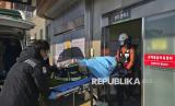 Seorang korban yang diselamatkan dari kecelakaan pesawat Jeju Air 7C2216 diangkut ke rumah sakit di Mokpo, Korea Selatan, Ahad (29/12/2024). Pesawat Jeju Air 7C2216 yang membawa 175 penumpang dan enam kru dalam penerbangan dari Bangkok, Thailand jatuh terbakar dan meledak setelah mendarat dan kemudian menghantam tembok pembatas di bandara Internasional Muan. Data sementara 85 orang tewas dalam peristiwa itu. (FOTO : Cho Geun-young/Yonhap via AP)