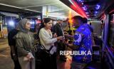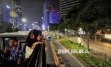 Wisatawan mengikuti tur dengan menaiki bus Transjakarta atap terbuka di kawasan Bundaran Hotel Indonesia, Jakarta, Ahad (29/12/2024). Wisata bus tingkat Open Top Tour ini merupakan program terbaru PT Transportasi Jakarta (Transjakarta) guna mengenalkan kota Jakarta kepada wisatawan dengan sensasi mengelilingi pusat kota menggunakan bus atap terbuka. Selain dapat menikmati lanskap gedung pencakar langit, wisatawan juga dapat penjelasan mengenai sejarah Kota Jakarta dari pemandu wisata dengan menggunakan headphone. Rute bus tersebut berawal dari Ratu Plaza Mal, Jalan Jenderal Sudirman, Bundaran Hotel Indonesia, Jalan MH Thamrin, Patung Arjuna Wijaya lalu kembali ke Ratu Plaza Mal. Dalam sekali tur, bus wisata ini dapat mengangkut sebanyak 30 penumpang dengan tarif per orang Rp50 ribu dari harga normal Rp100 ribu.Bus tingkat tanpa atap ini merupakan salah satu alternatif destinasi wisata di Jakarta untuk mengisi waktu hari libur. (FOTO : Republika/Thoudy Badai)
