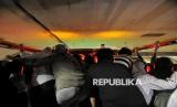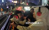 Wisatawan menunduk saat melintasi flyover Semanggi, Jakarta, Ahad (29/12/2024). Wisata bus tingkat Open Top Tour ini merupakan program terbaru PT Transportasi Jakarta (Transjakarta) guna mengenalkan kota Jakarta kepada wisatawan dengan sensasi mengelilingi pusat kota menggunakan bus atap terbuka. Selain dapat menikmati lanskap gedung pencakar langit, wisatawan juga dapat penjelasan mengenai sejarah Kota Jakarta dari pemandu wisata dengan menggunakan headphone. Rute bus tersebut berawal dari Ratu Plaza Mal, Jalan Jenderal Sudirman, Bundaran Hotel Indonesia, Jalan MH Thamrin, Patung Arjuna Wijaya lalu kembali ke Ratu Plaza Mal. Dalam sekali tur, bus wisata ini dapat mengangkut sebanyak 30 penumpang dengan tarif per orang Rp50 ribu dari harga normal Rp100 ribu.Bus tingkat tanpa atap ini merupakan salah satu alternatif destinasi wisata di Jakarta untuk mengisi waktu hari libur. (FOTO : Republika/Thoudy Badai)