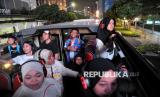 Wisatawan mengikuti tur dengan menaiki bus Transjakarta atap terbuka di Jalan Jenderal Sudirman, Jakarta, Ahad (29/12/2024). Wisata bus tingkat Open Top Tour ini merupakan program terbaru PT Transportasi Jakarta (Transjakarta) guna mengenalkan kota Jakarta kepada wisatawan dengan sensasi mengelilingi pusat kota menggunakan bus atap terbuka. Selain dapat menikmati lanskap gedung pencakar langit, wisatawan juga dapat penjelasan mengenai sejarah Kota Jakarta dari pemandu wisata dengan menggunakan headphone. Rute bus tersebut berawal dari Ratu Plaza Mal, Jalan Jenderal Sudirman, Bundaran Hotel Indonesia, Jalan MH Thamrin, Patung Arjuna Wijaya lalu kembali ke Ratu Plaza Mal. Dalam sekali tur, bus wisata ini dapat mengangkut sebanyak 30 penumpang dengan tarif per orang Rp50 ribu dari harga normal Rp100 ribu.Bus tingkat tanpa atap ini merupakan salah satu alternatif destinasi wisata di Jakarta untuk mengisi waktu hari libur. (FOTO : Republika/Thoudy Badai)