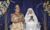 REPUBLIKA.CO.ID, TASIKMALAYA -- Pasangan pengantin tuna netra menunjukan buku nikah saat berlangsungnya nikah massal tuna netra se-Priangan Timur di Gedung Aisyah, Kota Tasikmalaya, Jawa Barat, Selasa (31/12/2024).