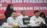 REPUBLIKA.CO.ID, JAKARTA -- Menko Bidang Politik dan Keamanan Budi Gunawan bersama Jaksa Agung ST. Burhanuddin dan Menteri Komunikasi dan Digital Meutya Hafid saat memberikan keterangan pers bersama terkait capaian kinerja Desk Koordinasi Pencegahan Korupsi dan Perbaikan Tata Kelola dan Desk Koordinasi Peningkatan Penerimaan Devisa Negara di Kejaksaan Agung, Jakarta, Kamis (2/1/2025).