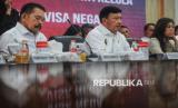 Jaksa Agung ST. Burhanuddin bersama Menko Bidang Politik dan Keamanan Budi Gunawan saat memberikan keterangan pers bersama terkait capaian kinerja Desk Koordinasi Pencegahan Korupsi dan Perbaikan Tata Kelola dan Desk Koordinasi Peningkatan Penerimaan Devisa Negara di Kejaksaan Agung, Jakarta, Kamis (2/1/2025). Dalam kesempatan tersebut Menkopolkam Budi Gunawan menjelaskan bahwa dalam tiga bulan terakhir desk pencegahan korupsi telah menyelamatkan Rp6,7 triliun dan akan fokus pada pemulihan aset korupsi di luar negeri untuk mendukung pembangunan nasional serta meningkatkan kesejahteraan masyarakat. (FOTO : Republika/Prayogi)