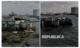REPUBLIKA.CO.ID, JAKARTA -- Foto perbandingan kondisi Musala At-Taubah yang terendam air laut pada Januari 2023 dan Januari 2025 di kawasan pesisir Muara Baru, Jakarta Utara, Jumat (3/1/2024).