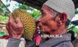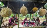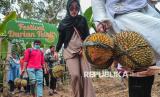 REPUBLIKA.CO.ID, JAMBI -- Pengunjung membawa durian saat Festival Durian Teluk 2025 di Desa Teluk, Batanghari, Jambi, Sabtu (4/1/2025).