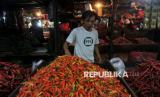 Pedagang cabai rawit merah menunggu pembeli di Pasar Senen, Jakarta, Selasa (7/1/2025). Menurut pedagang, harga cabai rawit merah mengalami kenaikan hingga dua kali lipat dari harga semula sekitar Rp42.000 menjadi Rp120.000 per kilogram. Kenaikan cabai rawit tersebut sudah terjadi selama sepekan dan berdampak pada menurunnya jumlah pembeli. Mereka berharap kenaikan harga cabai berangsur turun hingga mencapai harga normal. (FOTO : Republika/Thoudy Badai)