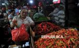 Pembeli memilah cabai rawit merah di Pasar Senen, Jakarta, Selasa (7/1/2025). Menurut pedagang, harga cabai rawit merah mengalami kenaikan hingga dua kali lipat dari harga semula sekitar Rp42.000 menjadi Rp120.000 per kilogram. Kenaikan cabai rawit tersebut sudah terjadi selama sepekan dan berdampak pada menurunnya jumlah pembeli. Mereka berharap kenaikan harga cabai berangsur turun hingga mencapai harga normal. (FOTO : Republika/Thoudy Badai)