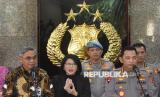 Kapolri Jenderal Pol Listyo Sigit Prabowo (kiri) bersama Ketua KPK Setyo Budiyanto (kedua kiri) didampingi Wakil Ketua KPK Fitroh Rohcahyanto (kedua kanan) dan Agus Joko Pramono (kanan) bersiap memberikan keterangan pers usai pertemuan di Mabes Polri, Jakarta, Rabu (8/1/2025).Ketua KPK beraudiensi ke Kapolri sebagai pertemuan awal setelah dilantik untuk membahas sinergi dalam pemberantasan serta pencegahan korupsi. (FOTO : ANTARA FOTO/Indrianto Eko Suwarso)