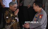 REPUBLIKA.CO.ID, JAKARTA -- Ketua KPK Setyo Budiyanto memberi hormat kepada Kapolri Jenderal Pol Listyo Sigit Prabowo usai pertemuan di Mabes Polri, Jakarta, Rabu (8/1/2025).