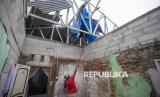 Warga memperbaiki atap rumah yang rusak akibat diterjang angin puting beliung di Desa Pabean ilir, Pasekan, Indramayu, Jawa Barat, rabu (8/1/2025). Angin puting beliung yang terjadi pada Rabu (8/1/2025) dini hari itu mengakibatkan 23 rumah di desa itu mengalami kerusakan. (FOTO : ANTARA FOTO/Dedhez Anggara)