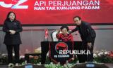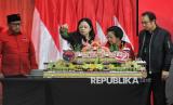 REPUBLIKA.CO.ID, JAKARTA Ketua Umum PDI Perjuangan Megawati Soekarnoputri didampingi Ketua DPP PDIP Puan Maharani, Prananda Prabowo dan Sekjen PDIP Hasto Kristiyanto memotong nasi tumpeng saat perayaan HUT ke-52 PDI Perjuangan di Sekolah Partai, Lenteng Agung, Jakarta Selatan, Jumat (10/1/2025).