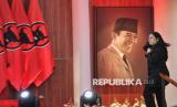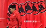 Ketua DPP PDI Perjuangan Puan Maharani menaiki panggung saat perayaan HUT ke-52 PDI Perjuangan di Sekolah Partai, Lenteng Agung, Jakarta Selatan, Jumat (10/1/2025). Dalam HUT ke-52 PDI Perjuangan yang mengangkat tema Satyam Eva Jayate dengan sub tema Api Perjuangan Nan Tak Kunjung Padam tersebut dihadiri oleh sejumlah elite partai PDIP seperti Ketua DPP PDIP Puan Maharani, Sekjen DPP PDIP Hasto Kristiyanto, Ketua DPP PDIP Prananda Prabowo, Bendahara Umum DPP PDIP Olly Dondokambey hingga Gubernur dan Wakil Gubernur terpilih DKJ Jakarta Pramono Anung dan Rano Karno. Perayaan HUT tersebut digelar dengan memotong tumpeng dan pidato politik Ketua Umum PDIP Megawati Soekarnoputri. Dalam pidatonya, Megawati menyoroti Indonesia yang tak kunjung menjadi negara maju dan mencontoh negara China. (FOTO : Republika/Thoudy Badai)