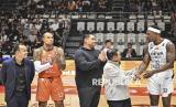 Menteri Pemuda dan Olahraga (Menpora) Dito Ariotedjo (kedua kiri) bersama Gubernur DKI Jakarta Terpilih Pramono Anung (kedua kanan), pebasket Pelita Jaya Jakarta Brandon Jawanto (kiri), dan pebasket Dewa United Banten Lester Prosper (kanan) berfoto bersama pada pembukaan Indonesian Basketball League (IBL) 2025 di Hall Basket Senayan, kompleks Gelora Bung Karno (GBK), Jakarta, Sabtu (11/1/2025). IBL musim 2025 diikuti oleh 14 tim bola basket. (FOTO : ANTARA FOTO/Aprillio Akbar)