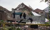REPUBLIKA.CO.ID, MOJOKERTO -- Tim Gegana Polda Jatim melakukan penyisiran di rumah lokasi ledakan milik anggota Polisi di Desa Sumolawang, Kecamatan Puri, Kabupaten Mojokerto, Jawa Timur, Senin (13/1/2025).