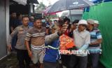 Warga mengevakuasi korban tewas akibat dampak ledakan di Desa Sumolawang, Kecamatan Puri, Kabupaten Mojokerto, Jawa Timur, Senin (13/1/2025). Dua korban tewas tertimpa reruntuhan rumah setelah terjadi ledakan di rumah seorang anggota Polisi.  (FOTO : ANTARA FOTO/Syaiful Arif)
