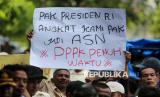 Aksi damai Aliansi Tenaga Non ASN itu menuntut pemerintah untuk mengangkat mereka sebagai Pegawai Pemerintah dengan Perjanjian Kerja (PPPK) penuh waktu dan bukan separuh waktu, terutama bagi yang sudah lama mengabdi namun tidak lulus seleski PPPK pada tahap pertama.