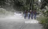 REPUBLIKA.CO.ID, HALMAHERA -- Sejumlah pelajar melintas di jalan umum yang tertutup abu vulkanik dampak erupsi Gunung Ibu di Desa Tobaro, Kabupaten Halmahera Barat, Maluku Utara,Rabu (15/1/2025).