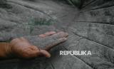 Seorang jurnalis menunjukkan abu vulkanik yang menutupi daun talas dampak erupsi Gunung Ibu di Desa Tobaro, Kabupaten Halmahera Barat, Maluku Utara, Rabu (15/1/2025). Erupsi Gunung Ibu pada Rabu (15/1) pukul 07.11 WIT dengan semburan abu vulkanik setinggi 4.000 dari atas puncak menyebabkan sejumlah desa di Kecamatan Ibu Utara mengalami hujan abu, sementara gunung tersebut masih menunjukkan peningkatan aktivitas dan PVMBG menaikan status Gunung Ibu dari Siaga Level III menjadi Awas Level IV.  (FOTO : ANTARA FOTO/Andri Saputra)
