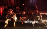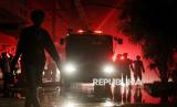 Petugas pemadam kebakaran beristirahat saat berusaha memadamkan api yang menghanguskan bangunan Glodok Plaza, Taman Sari, Jakarta, Kamis (16/1/2025) dini hari. Sebanyak 44 mobil pemadam kebakaran dan 230 personel dikerahkan untuk memadamkan api yang menghanguskan bangunan Gedung Glodok Plaza. Kebakaran terjadi pada Rabu (15/1) sekitar pukul 21.22 WIB yang diduga bersumber dari diskotek di lantai tujuh. Hingga Kamis (16/1) dini hari sekitar pukul 02.33 WIB, kobaran api masih menyala didalam gedung Glodok Plaza. Dalam peristiwa ini, penyebab kebakaran masih diselidik oleh petugas dan laporan sementara tidak terdapat lorban jiwa dalam peristiwa tersebut. (FOTO : Republika/Thoudy Badai)