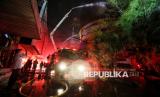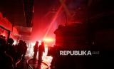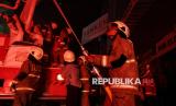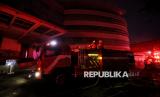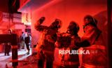 Petugas pemadam kebakaran berusaha memadamkan api yang menghanguskan bangunan Glodok Plaza, Taman Sari, Jakarta, Kamis (16/1/2025) dini hari. Sebanyak 44 mobil pemadam kebakaran dan 230 personel dikerahkan untuk memadamkan api yang menghanguskan bangunan Gedung Glodok Plaza. Kebakaran terjadi pada Rabu (15/1) sekitar pukul 21.22 WIB yang diduga bersumber dari diskotek di lantai tujuh. Hingga Kamis (16/1) dini hari sekitar pukul 02.33 WIB, kobaran api masih menyala didalam gedung Glodok Plaza. Dalam peristiwa ini, penyebab kebakaran masih diselidik oleh petugas dan laporan sementara tidak terdapat lorban jiwa dalam peristiwa tersebut. (FOTO : Republika/Thoudy Badai)