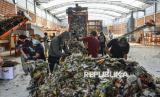REPUBLIKA.CO.ID, BANDUNG -- Pekerja mengolah sampah di Tempat Pengolahan Sampah Terpadu (TPST) Tegallega, Bandung, Jawa Barat, Kamis (16/1/2025).
