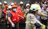 Sejumlah petugas mengevakuasi jenazah korban kebakaran Glodok Plaza, Jakarta, Kamis (16/1/2025). Tim gabungan telah mengevakuasi tiga jenazah korban dari total delapan laporan orang hilang dalam peristiwa kebakaran tersebut yang kemudian dibawa ke RS Polri Kramat Jati untuk diidentifikasi lebih lanjut. (FOTO : ANTARA FOTO/Sulthony Hasanuddin)