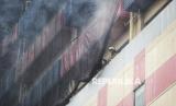 Petugas pemadam kebakaran berada di gedung untuk melakukan proses pendinginan setelah terjadi kebakaran di Glodok Plaza, Jakarta, Kamis (16/1/2025). Sebanyak 45 unit mobil dan 230 personil pemadam kebakaran dikerahkan ke lokasi kebakaran Glodok Plaza yang terjadi pada Rabu (15/1/2025) malam. Menurut data sementara hingga pukul 13.23 WIB hari ini, Tim gabungan berhasil mengevakuasi 9 orang korban selamat dan 7 orang masih dalam pencarian. (FOTO : Republika/Prayogi)