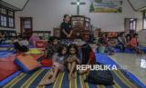 Sejumlah warga yang terdampak erupsi Gunung Ibu beraktivitas di Gereja Emanuel  Desa Tongute Sungi, Kabupaten Halmahera Barat, Maluku Utara, Kamis (16/1/2025).Badan Penanggulangan Bencana Daerah (BPBD) Halmahera Barat mencatat data sementara, pengungsi yang berada di Desa Sangaji Nyeku sebanyak 209 saat ini menempati gereja sebagai tempat pengungsian karena lokasinya yang lebih aman dari ancaman erupsi Gunung Ibu.  (FOTO : ANTARA FOTO/Andri Saputra)