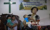 REPUBLIKA.CO.ID, HALMAHERA -- Sejumlah warga yang terdampak erupsi Gunung Ibu beraktivitas di Gereja Emanuel  Desa Tongute Sungi, Kabupaten Halmahera Barat, Maluku Utara, Kamis (16/1/2025).