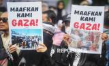 REPUBLIKA.CO.ID, JAKARTA -- Pengunjuk rasa mengikuti aksi damai solidaritas untuk Palestina di depan Kedutaan Besar Amerika Serikat di Jakarta, Jumat (17/1/2025).