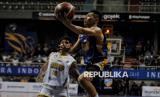 Pebasket Satria Muda Pertamina Abraham Damar Grahita melakukan lay up saat bertanding melawan tim Kesatria Bengawan Solo pada laga Indonesia Basketball League 2025 di Britama Arena, Jakarta, Jumat (17/1/2025). Satria Muda Pertamina berhasil menang atas Kesatria Bengawan Solo dengan skor 80-74 (FOTO : Republika/Thoudy Badai)