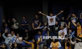 Suporter Satria Muda Pertamina menyaksikan pertandingan melawan Kesatria Bengawan Solo pada laga Indonesia Basketball League 2025 di Britama Arena, Jakarta, Jumat (17/1/2025). Satria Muda Pertamina berhasil menang atas Kesatria Bengawan Solo dengan skor 80-74 (FOTO : Republika/Thoudy Badai)